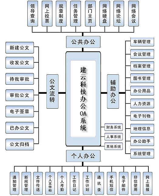 建云科技结合新一代办公自动化设计思想和先进技术,推出了完全自主知识产权的办公自动化系统。用信息化手段和新一代的管理思维,提供了强有力的网络化、电子化和信息化支持,把协同办公的理念,知识管理以及信息门户的思想带入办公生活,帮助政府部门和企事业实现信息化程度的全面提升。